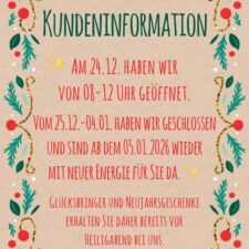 Öffnungszeiten über die Weihnachtsfeiertage 2025 Posted on 1. Dezember 2025 by Krüger Leave a comment Posted in Allgemein